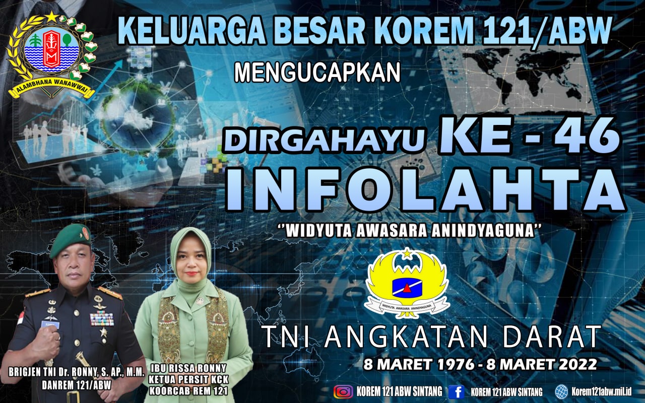 KELUARGA BESAR KOREM 121/ABW MENGUCAPAKAN DIRGAHAYU KE – 46 INFOLAHTA “WIDYUTA AWASARA ANINDYAGUNA” 8 Maret 2022 oleh Redaksi Korem 121/abw
