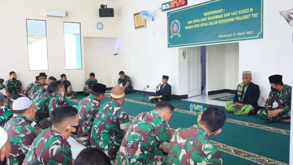 Mempawah – Kodim 1201/Mph memperingati Isra’ Mi’raj Nabi Muhammad Shallallahu Alaihi Wasallam 1443 h/2022 M, bertempat di Surau Al-qodim, Asrama Soeharto, jln Daeng manambon, Desa kuala Secapah, Kecamatan Mempawah Hilir, Kabupaten Mempawah, Senin (07/03/2022).