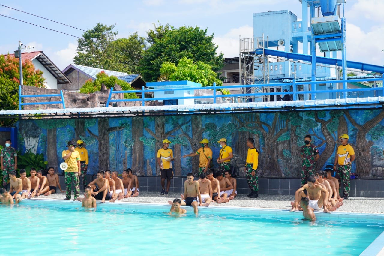 Sintang – Calon Tamtama PK TNI – AD gelombang I Tahun Anggaran 2022 melaksanakan test Ketangkasan Renang di Kolam Renang Malioboro Jl. Kelam No.10, Manter, Kec. Sintang, Kabupaten Sintang, Kalimantan Barat. Kamis (10/03/2022).