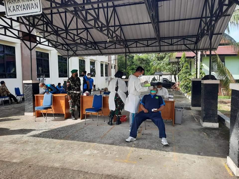 Putussibau – Guna mencegah penularan covid 19 di wilayah Kabupaten Kapuas Hulu, Kodim 1206/Putussibau bersama Pengadilan Negeri Putussibau melaksanakan tracing dalam rangka upaya-upaya antisipasi sebagai langkah pencegahan bertambahnya kasus positif khususnya dilingkungan pemerintahan dan wilayah Kabupaten Kapuas Hulu pada umumnya. Jumat (11/03/22)