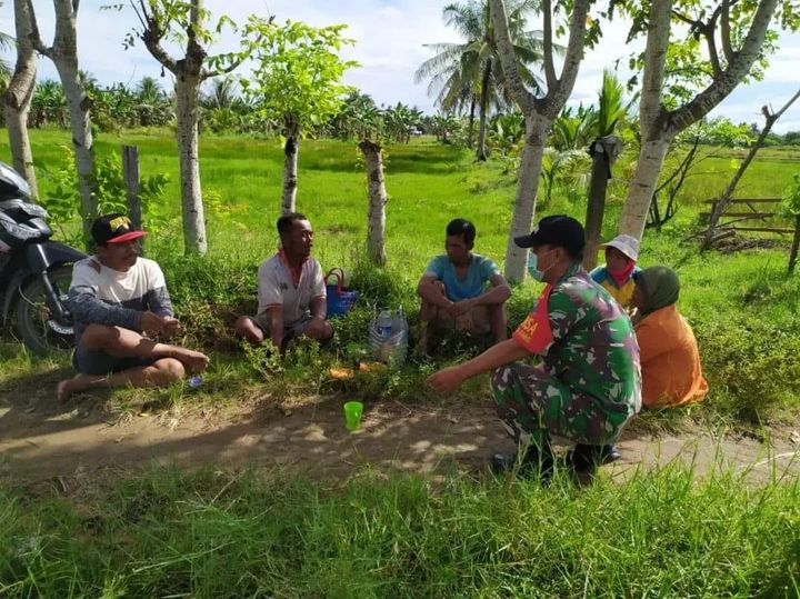 Dalam kesempatan tersebut, selain melaksanakan monitoring wilayah, Babinsa juga melaksanakan kegiatan komunikasi sosial (komsos) dengan kelompok Tani.