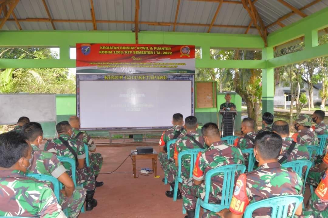 Dalam keterangannya, Dandim 1203/Ktp Letkol Inf Alim Mustofa mengatakan, kegiatan Binsiap Apwil dan Puanter dilaksanakan bertujuan membentuk sikap insan teritorial yang memahami dan mengamalkan nilai-nilai yang terkandung di dalam sikap teritorial.