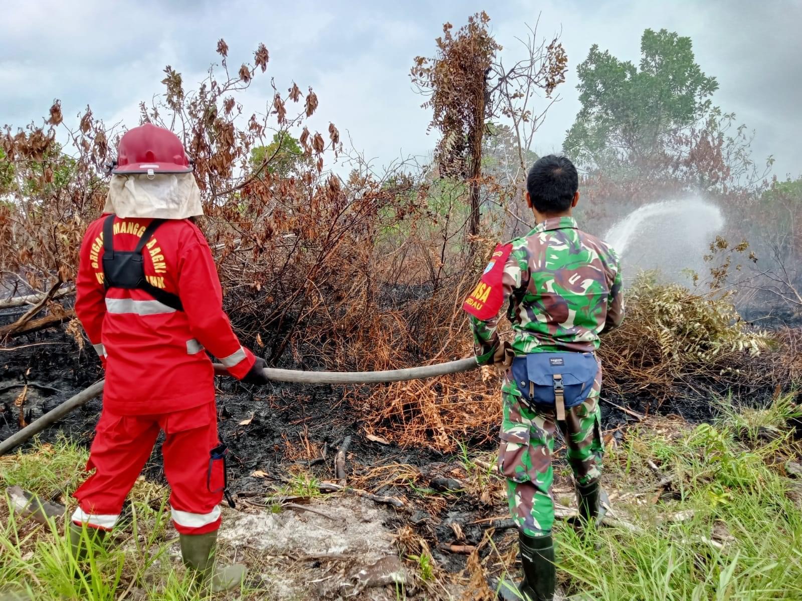Kebakaran Lahan, Babinsa Koramil 1202-08/Singsel Gerak Cepat Lakukan Pemadaman Api