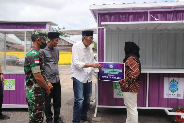 Sintang – Perwira Seksi Oprasi (Pasiops) Kodim 1205/Sintang, Kapten Arm Iman Yulianto mewakili Komandan Kodim Sintang dalam kegiatan penyerahan 3 gerobak usaha umat dari Badan Kerjasama Pembangunan Umat Islam (BKPUI) di Halaman Rumah Adat Melayu Tapak Sireh, Jalan YC Oevang Oeray Sintang, Minggu (20/03/2022).