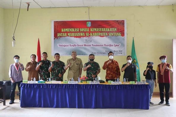Kegiatan yang mengangkat tema “Antisipasi Konflik Sosial Melalui Pendekatan Kearifan Lokal” ini dibuka secara resmi oleh Bupati Sintang, dr. H. Jarot Winarno, M. Med., PH dengan menghadirkan Dandim 1205/Sintang, Kapolres Sintang, Kajari Sintang, Ketua Pengadilan Negri Sintang, Rektor Universitas Kapuas Sintang sebagai narasumber dalam sesi diskusi.