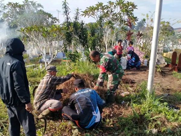 Lebih lanjut menurut Babinsa, sasaran gotong royong kali ini adalah pembersihan semak semak dan rumput di areal makam, sehingga komplek pemakaman terlihat bersih dan bagi masyarakat yang akan melakukan ziarah kubur pun menjadi nyaman,” tandasnya.