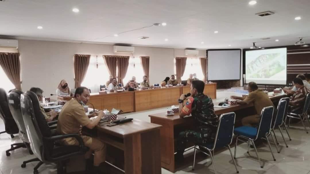 Ketapang – Asisten II Setda Ketapang Bidang Perekonomian dan Pembangunan, Syamsul Islami, S.IP., MT.,mempimpin rapat pernyataan kesiapan lahan ruas jalan Nanga Tayap – Sungai Kelik yang turut dihadiri Danramil 1203-01/Ng. Tayap, Kapten Inf Andri Fitri berlangsung di Kantor Bappeda Ketapang, Selasa (29/3/2022)