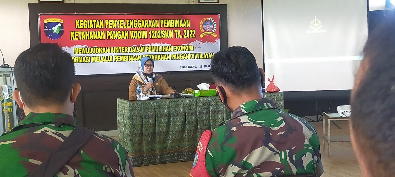 Singkawang, Selasa (29/3/22) Dalam upaya mensukseskan program Ketahanan Pangan, Kodim 1202/Singkawang menggelar kegiatan Pembinaan Ketahanan Pangan Tahun 2022 yang diikuti sejumlah Babinsa yang mempunyai tugas mendampingi kelompok tani ( Poktan ) di wilayah jajaran bertempat di Aula Makodim Jl. Alianyang Kel. Pasiran Kec. Singkawang Barat Kota Singkawang.