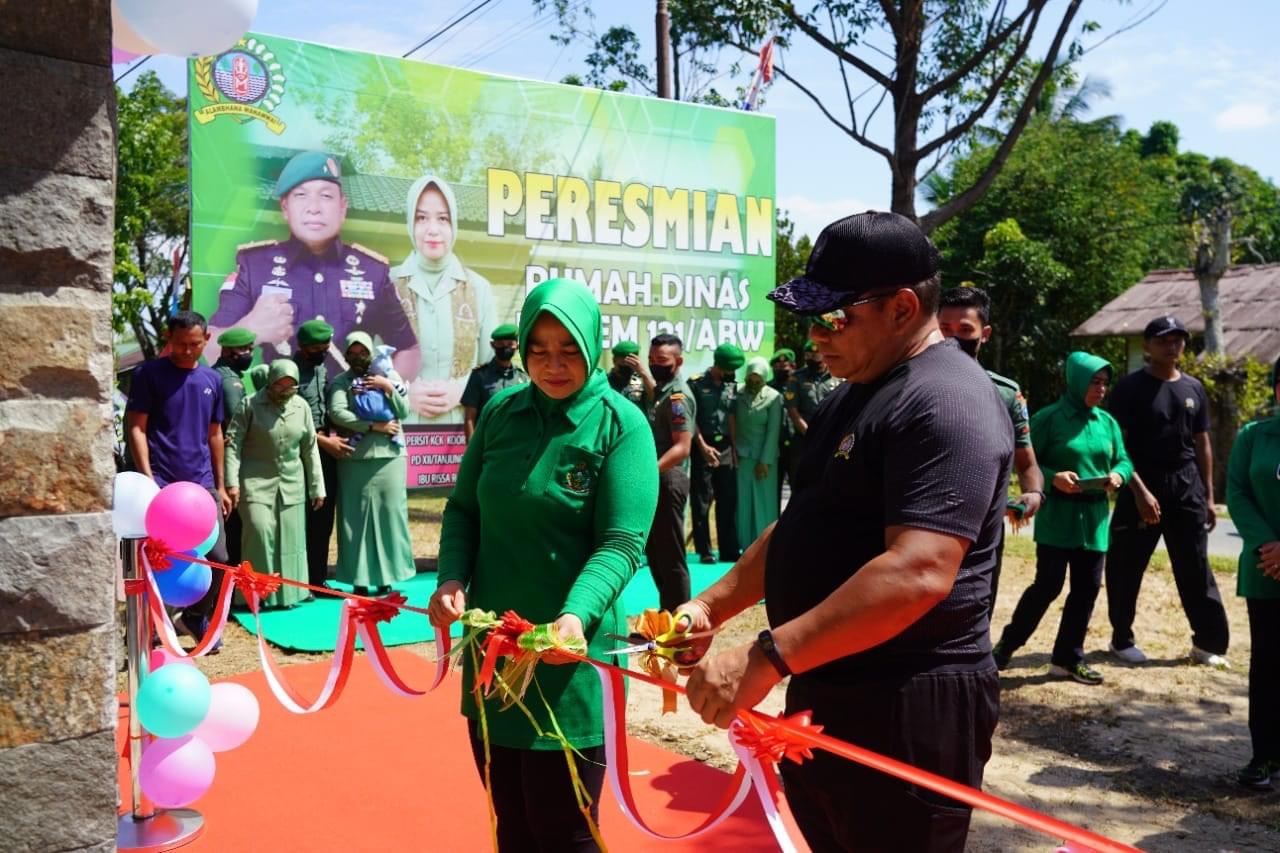 Sintang, Komandan Korem 121/Abw Brigjen TNI Ronny, S. AP,.M.M didampingi Ketua Persit KCK Koorcab Rem 121 PD XII Tanjungpura Ibu Rissa Ronny meresmikan rumah dinas untuk anggota Makorem 121/Abw, Jl. Mungguk Jengkol, Kecamatan Sintang, Kabupaten Sintang, Kalimantan Barat, Kamis (31/03/2022).