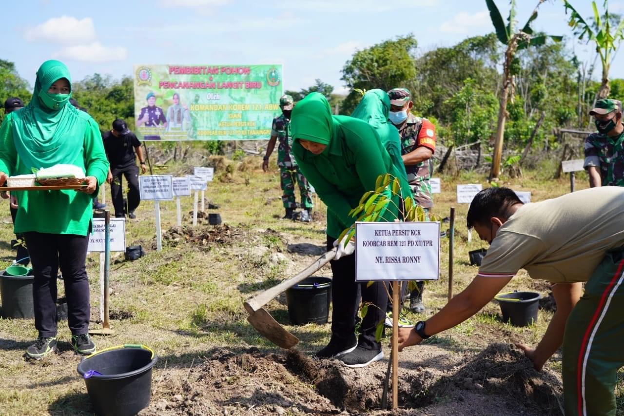 Sintang, Komandan Korem 121/Abw Brigjen TNI Dr. Ronny, S. AP,.M.M di dampingi Ketua Persit KCK Koorcab Rem 121 PD XII Tanjungpura Ibu Rissa Ronny menegaskan bahwa pihaknya berkomitmen untuk terus mencanangkan program Langit Biru dan bebas asap akibat kebakaran hutan dan lahan (Karhutla), dengan cara penghijauan.