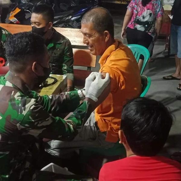 Sambas – Tim Vaksinator Mobile TNI yang terdiri dari Anggota Kesehatan Yonif 645/Gty dan Anggota Kodim 1208/Sambas, melaksanakan kegiatan vaksinasi di wilayah Kab. Sambas, Selasa Malam (12-04-22)