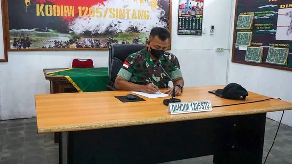 Melalui Vicon, Dandim Sintang Ikuti Rapat Bahas Persiapan Penyaluran Bantuan Bersama Panglima TNI