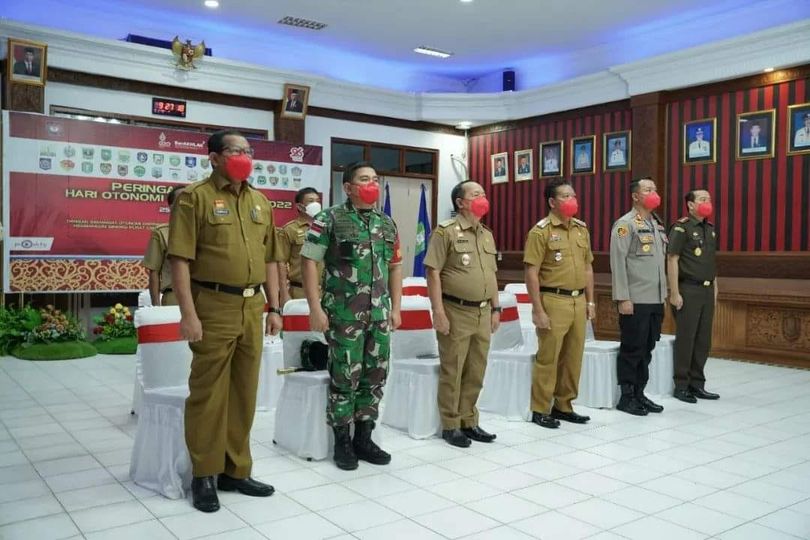 Sanggau,. Komandan Kodim 1204 Sanggau Letkol Inf Bayu Yudha Pratama bersama Pemerintah Daerah Kabupaten Sanggau menghadiri Hari Otonomi Daerah ke XXVI diruangan Musyawarah ll Lantai 1 Kantor Bupati Sanggau, Senin(25/6/2022)
