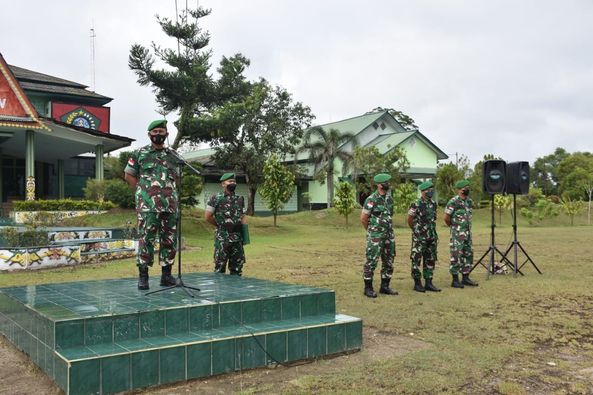 Kasrem 121/Abw Kolonel Czi Rudy Wahjudiono, S.E,.M.M bertindak sebagai pimpinan apel dalam Apel siaga sambut Hari Raya Idul Fitri 1443 H. Pelaksanaan apel siaga ini berlangsung dengan tetap menerapkan protokol kesehatan yakni menggunakan masker, dan menjaga jarak.