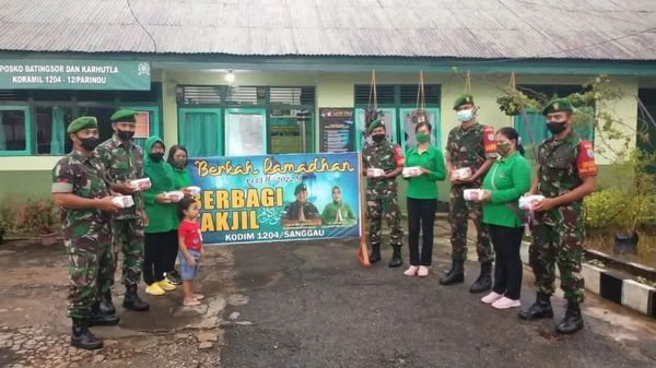 Plh Danramil 1204-12/Parindu Serka Eko Puji Santoso saat di konfirmasi mengatakan, di Bulan Ramadan yang penuh berkah ini anggota Koramil Parindu beserta Persit membagikan takjil gratis kepada masyarakat.