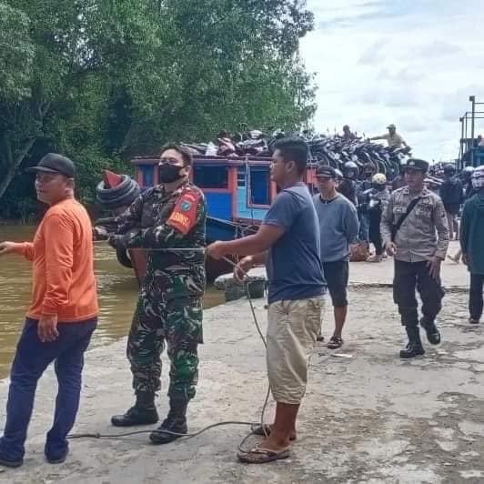 Dalam kegiatannya, Babinsa Kopda Suhendar turun langsung dan membantu para warga yang hendak menaiki perahu atau panthon yang merupakan sarana penyeberangan tradisional di Sungai Batang, Desa Penjajap.