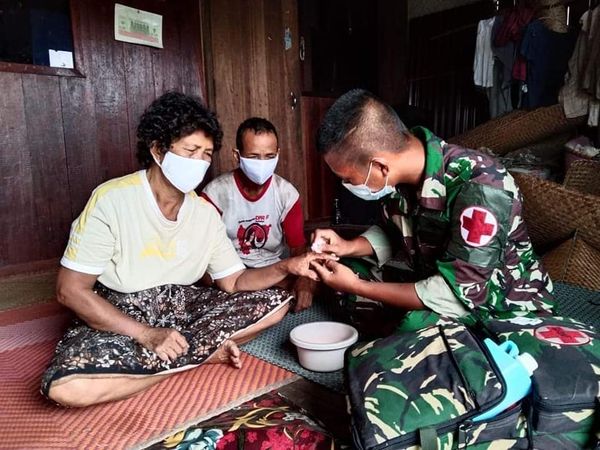Pratu Vicky Prasetyo beserta dua rekannya”,kami berikan pengobatan gratis dengan menyambangi rumah ke rumah warga ada yang pakai kendaraan bermotor ada yang berjalan kaki, karena warga untuk berobat ke puskesmas jarak nya sangat jauh.