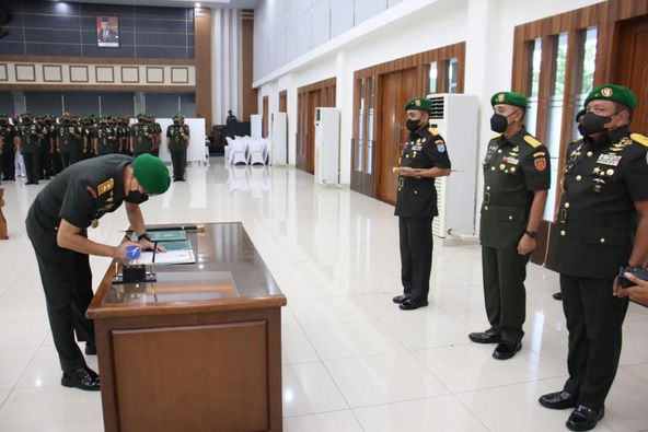 Pergantian jabatan Komandan Korem (Danrem) 121/Abw dari pejabat lama, Brigjen TNI DR Ronny,S.AP,.M.M, kepada pejabat baru, Brigjen TNI Pribadi Jatmiko, diawali prosesi upacara Sertijab Danrem 121/Abw ditandai dengan penyerahan tanda jabatan dan Tongkat Komando serta Tunggul Korem 121/Abw oleh Pangdam XII/Tpr kepada pejabat baru Brigjen TNI Pribadi Jatmiko.