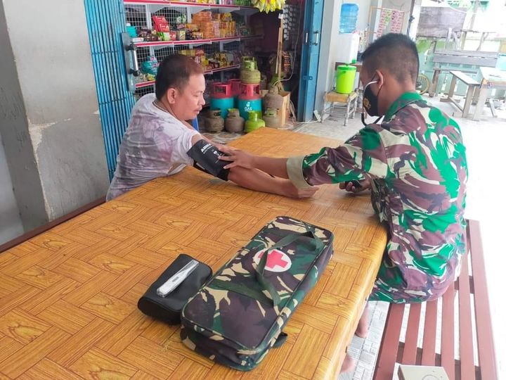 Pratu Vicky Prasetyo beserta dua rekannya”,kami menyambangi rumah ke rumah warga, banyak keluhan warga yang kami obati seperti panas demam, sakit pinggang dan gula darah”, harapannya warga yang sudah kami obati bisa pulih kembali dan bisa beraktivitas seperti biasa”, imbuhnya.