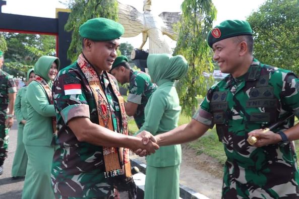 Sintang – Dandim 1205/Sintang, Letkol Inf Kukuh Suharwiyono hadiri tradisi penerimaan Danrem 121/Abw, Brigjen TNI Pribadi Jatmiko di Makorem 121/Abw, Kelurahan Tanjung Puri, Sintang, Senin (23/05/2022).