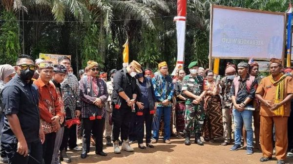 Ketapang – Pj. Danramil 1203-07/Marau Peltu Antonius menghadiri Peresmian Rumah Adat Dayak, yang berada di Desa Bandasari, Kecamatan Air Upas, Kabupaten Ketapang, Minggu (23/5/2022)