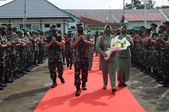 Sambas – Komandan Korem 121/Abw Brigjen TNI Pribadi Jatmiko beserta Ketua Persit KCK Koorcab Rem 121 PD XII Ny. Eny Pribadi Jatmiko melaksanakan kunjungan kerja (Kunker) ke Kodim 1208/Sambas yang beralamat di Jalan Tabrani, Desa Lumbang, Kec. Sambas Kab. Sambas, Kalbar. Jumat (27/05/2022).