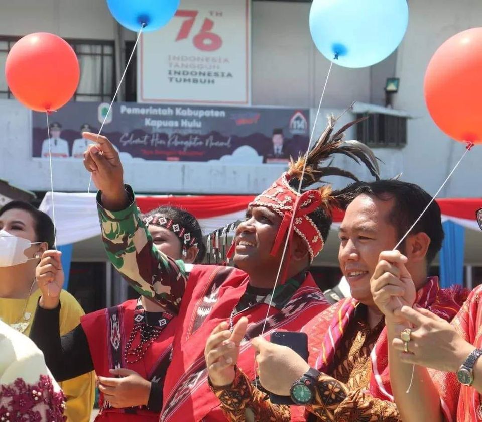 Putussibau – Dandim 1206/PSB Letkol Inf Jemi Oktis Oil S.I.P beserta istri turut hadir dalam rangkaian Hari Jadi Kabupaten Kapuas Hulu ke 127 dan bertepatan dengan hari lahir Pancasila yang berlangsung di halaman kantor Bupati Kapuas Hulu. Jl. Antasari No 2, Putussibau Kota, Kec. Putussibau Utara,Kab. Kapuas Hulu, Rabu (01/06/2022).