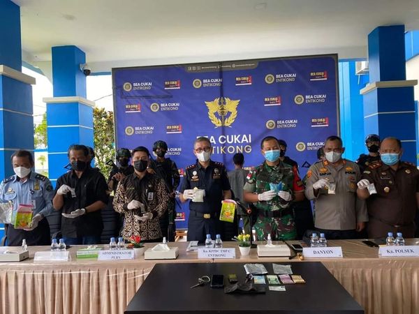 Entikong – Kamis 2 Juni 2022 Pukul. 12.15 Wib bertempat di KPPBC TMP C Entikong, dilakukan penyampaian kegiatan Press Release atas hasil penindakan NPP oleh tim gabungan Satgas Pamtas Yonif 645/GTY, Bea Cukai Entikong, BNN RI, SGI, dan Unit Intel Kodim di Pos Segumun.