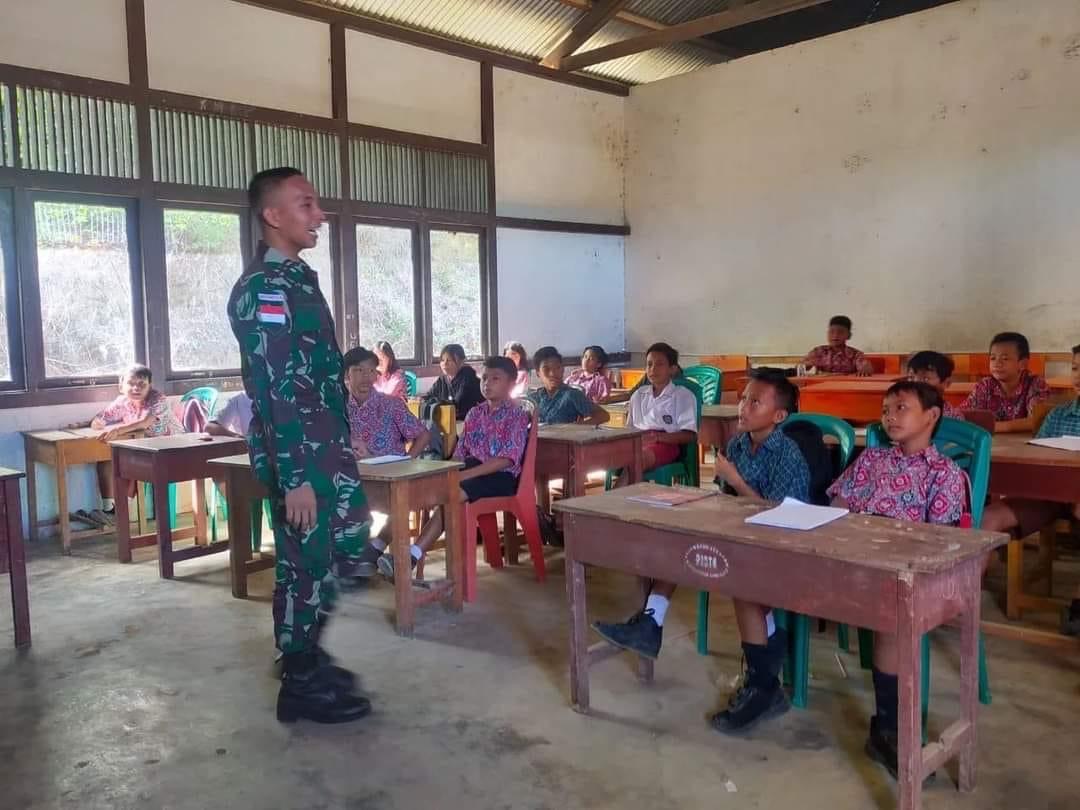 “Kami sangat bangga dan berterima kasih atas kehadiran bapak-bapak TNI tidak hanya bertugas menjaga perbatasan, tetapi juga membantu mencerdaskan generasi muda-mudi di wilayah perbatasan RI-MLY,” Ujar Kepsek Bp Abram Sabri S.Pd