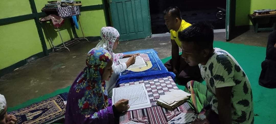 Kapuas Hulu – Pos Kapar Satgas Pamtas Yonarmed 19/105 Trk Bogani dipimpin Wadanpos Serda Eri tarigan bersama anggota mengajarkan mengaji kepada anak-anak di perbatasan Desa Sungai Senunuk, Kec. Batang Lupar, Kab. Kapuas Hulu. (Rabu, 8 Juni 2022)