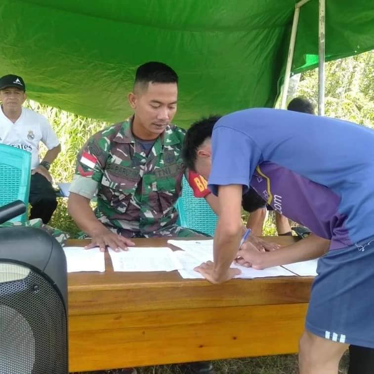 Sambas – Anggota Koramil 02/Sejangkung Kopda Saparudin mengikuti kegiatan seleksi pemain sepak bola sekecamatan sejangkung guna Mengikuti kegiatan turnamen Sepak Bola POGOROMAS di kabupaten Sambas berlokasi di lapangan sepak bola senujuh Dusun Maklebar Desa senujuh Kec. Sejangkung Kab. Sambas, Rabu (15-06-22).