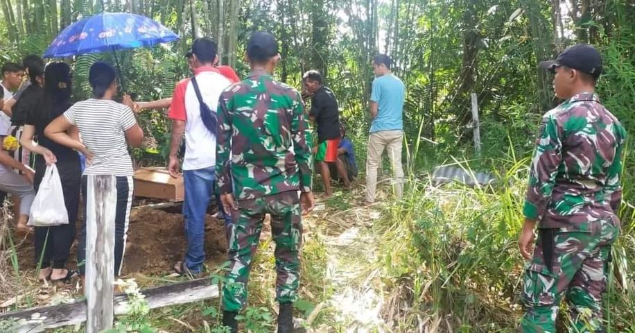 Sanggau, Kalbar – Sebagai wujud rasa turut berduka cita serta kepedulian terhadap warga binaannya yang sedang mengalami musibah, Personel Pos Guntembawang SSK 4 yang dipimpin langsung oleh Danpos Guntembawang Letda Inf J.A Sinaga beserta 2 orang anggota melayat dan membantu proses pemakaman jenazah alm. Aditya anak dari Bapak Sara di Dusun Guntembawang Ds.Suruh Tembawang Kec.Entikong