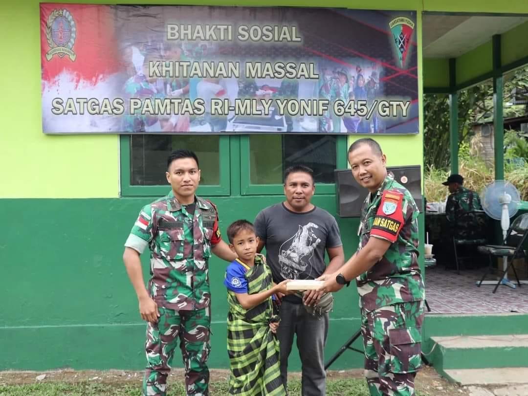 *Satgas Pamtas RI-MLY Yonif 645/Gty Gelar Bakti Sosial Khitanan Massal dan Pemberian Tali Asih Bagi Anak-Anak Perbatasan Entikong*