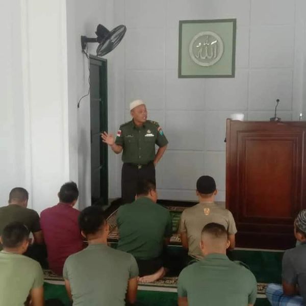 memberikan Kuliah Tujuh menit (Kultum) kepada Prajurit Makodim 1208/Sambas setelah sholat zuhur berjamaah bertempat di Masjid Mujahidin, Rabu (07/06/2022).