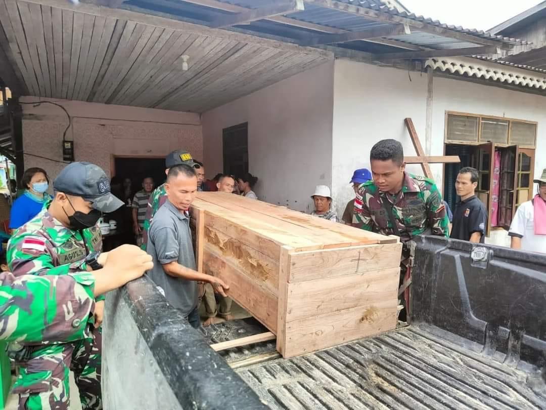 Selain menjaga perbatasan Rl-Malaysia kami juga mempunyai tugas kemanusiaan yang termasuk di dalam program pembinaan teritorial terbatas terhadap wilayah binaan pos-pos jajaran, salah satunya adalah membantu terhadap warga yang mengalami kesusahan, sedang mengalami musibah ataupun kedukaan seperti saat ini.