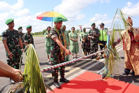 Ketapang – Forkopimda Kabupaten Ketapang sambut Danrem 121/Abw, Brigjen TNI Pribadi Jatmiko Dan Ketua Persit KCK Koorcab Rem 121 PD XII/Tanjungpura Ny. Eni Pribadi Jatmiko dalam rangka kunjungan kerja diwilayah Kodim 1203/Ktp, yang didampingi oleh Kasi Intel Rem 121/Abw Kolonel Inf Fadjar Moch Sjafrudin, S. Sos di Bandara Rahadi Oesman Ketapang, Senin (11/7/2022)