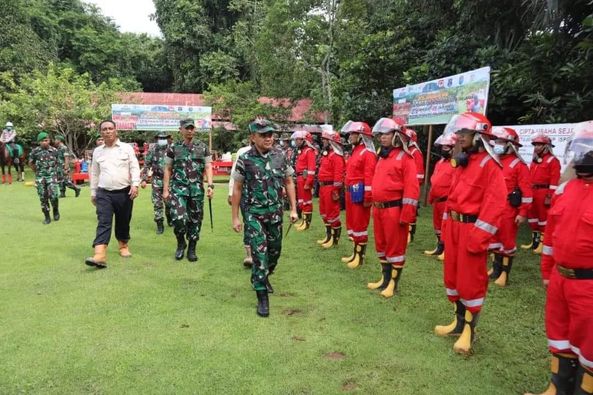 Kayong Utara – Brigjen TNI Pribadi Jatmiko Komandan Korem 121/Abw memimpin Apel siaga Satgas pencegahan dan penanggulangan Kebakaran Hutan dan Lahan yang digelar di PT. Cipta Usaha Sejati (CUS) Kec. Simpang Hilir, Kayong Utara, Selasa (12/7/2022)