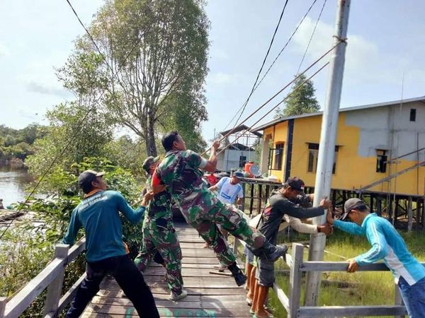 Babinsa 1206-15/Suhaid Lestarikan Budaya Bangsa: Gotong Royong Dirikan Tiang Listrik Bersama Warga