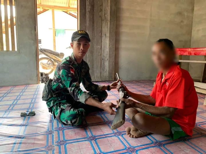 BENGKAYANG, KALBAR – Pos Siding Satgas Pamtas Yonif 645/GTY terima penyerahan secara sukarela 1 (satu) pucuk senjata api rakitan jenis LANTAK pada saat kegiatan Anjangsana ke rumah-rumah warga memberikan pelayanan kesehatan, membantu menanam tanaman terong, kacang panjang dan gambas di ladang milik warga perbatasan di Dsn. Paup Desa. Siding Kec. Siding Kab. Bengkayang. Minggu, (17/07/2022).
