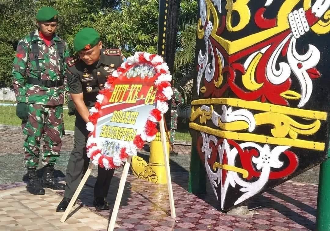 “Ziarah ini merupakan salah satu rangkaian peringatan HUT Kodam XII/TPR Ke – 64, sekaligus momen untuk mengenang jasa para pahlawan,” jelas Dandim saat menjadi inspektur upacara penghormatan di Taman Makam Pahlawan Manalo Marajuang.