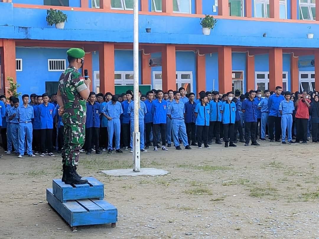 Sintang – Pj. Danramil 1205 – 07/Sintang, Letnan Satu Inf Perry Rajagukuguk menutup rangkaian kegiatan Masa Pengenalan Lingkungan Sekolah (MPLS) di SMKS Muhammadiyah Sintang, Jalan Akcaya 2, Sintang, Rabu (20/07/2022).