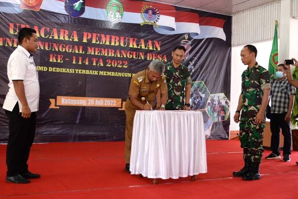 Ketapang – Bupati Ketapang Martin Rantan, SH.,M., Sos, membuka secara resmi acara TNI Manunggal Membangun Desa (TMMD) Imbangan Ke-114 TA. 2022 Kodim 1203/Ktp di Pendopo Bupati Jalan K.H Agoes Salim Ketapang, Selasa (26/7/2022).
