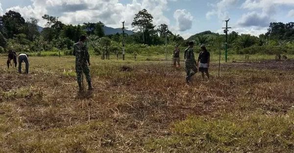 Sanggau, Kalbar – Pos Segumun Satgas Pamtas RI-MLY Yonif 645/GTY Dipimpin Prada Zahri beserta Tokoh Masyarakat, Tokoh Adat Dusun Segumun dan masyarakat Dusun segumun melaksanakan pembersihan lahan yang akan digunakan dalam Kegiatan Gawai Rumpun Dayak yang melibatkan 3 negara (Indonesia, Malaysia dan Brunai Darusalam), di Dusun. Segumun Desa. Lubuk Sabuk Kecamatan. Sekayan Kab. Sanggau. Sabtu, (23/07/2022).