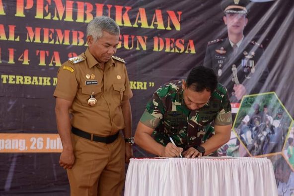 Acara pembukaan program TNI tersebut ditandai dengan pernyataan resmi Bupati Ketapang Martin Rantan, SH.,M., Sos, dan penandatanganan naskah serah terima pekerjaan kepada Dandim 1203/Ktp Letkol inf Alim Mustofa.