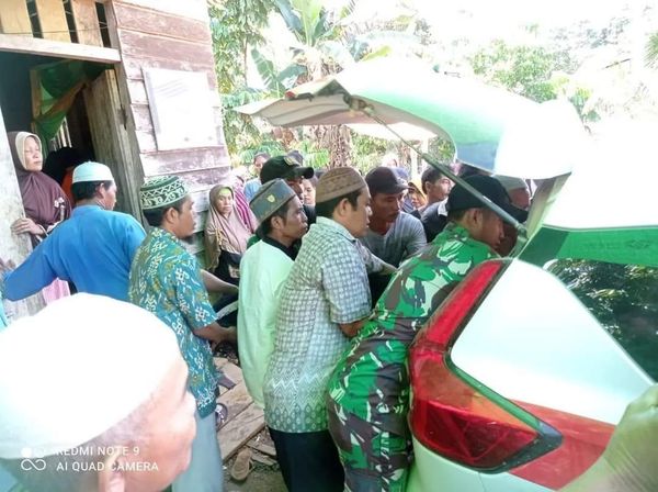 Sambas, Kalbar − Sebagai wujud rasa turut berduka cita serta kepedulian terhadap warga binaannya yang sedang mengalami musibah, Personel Pos Sei Bening Satgas Pamtas Yonif 645/Gty yang dipimpin langsung Wadanpos Serda Rohid beserta 4 orang anggota pos Sei Bening melayat dan membantu melaksanakan proses Pemakaman Alm. Aniyah keluarga dari Bapak Amir yang beralamat di Dusun Asuansang Desa Sei Bening Kec. Sajingan Besar Kab. Sambas. Sabtu, 23/07/2022.