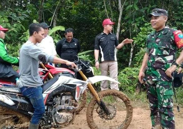 Tak mengenal hujan dan tanah becek serta medan yang berat tidak menyurutkan rombongan untuk meninjau lokasi TMMD, hal ini untuk memberikan semangat kepada anggota yang berada di lapangan dan juga mengecek progres pekerjaan yang dilaksanakan oleh Satgas TMMD.