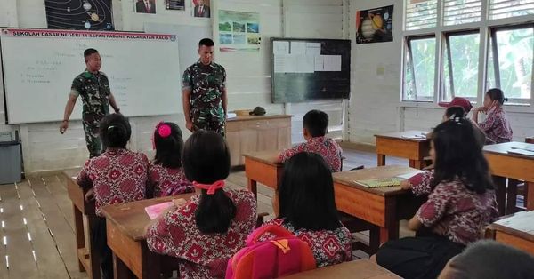 Dengan didampingi oleh guru, para siswa yang mengikuti pelajaran terlihat sangat antusias dari banyaknya pertanyaan yang diajukan, terutama tentang bagaimana caranya agar bisa menjadi seorang prajurit TNI.