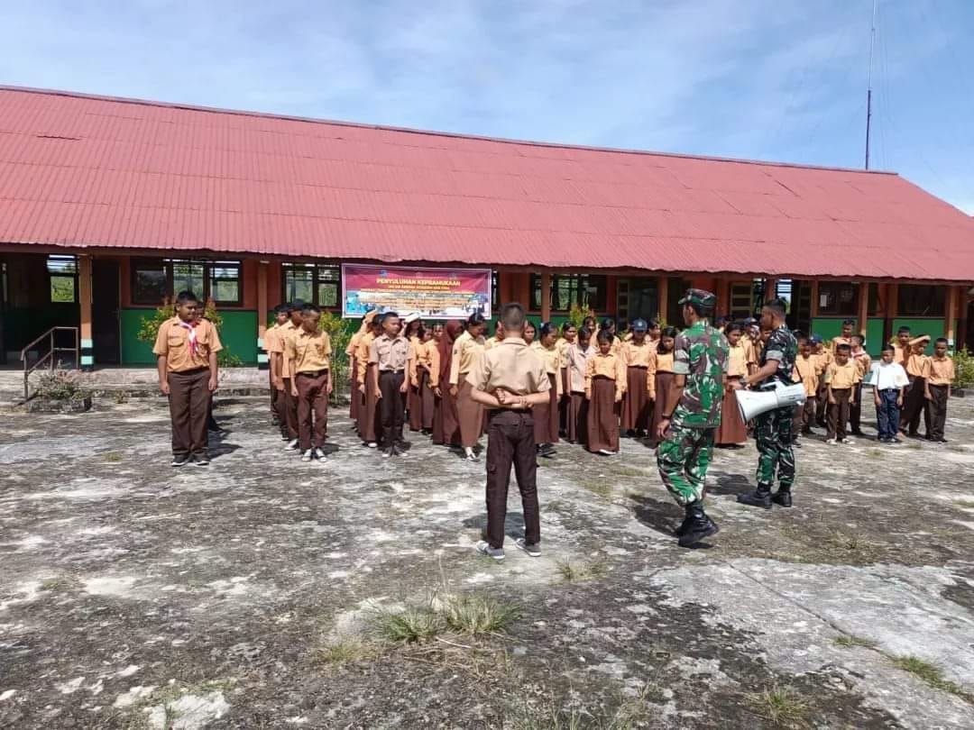 Sambas – Bati Bakti TNI Siter Kodim 1208/Sambas Sertu Riyono beserta 3 orang Anggota melaksanakan pelatihan pramuka kepada siswa siswi SMP N 04 Sajingan Besar, bertempat di Lapangan Sekolah, Desa Santaban, Kecamatan Sajingan Besar, Kabupaten Sambas, Senin (01/08/2022).
