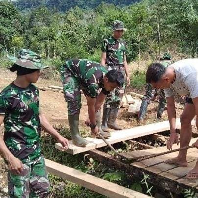 Terlihat peran masyarakat sangat luar biasa dalam upaya membangun daerah dan keinginan menuju kemajuan, ini terlihat dari semangat masyarakat dalam membantu TNI untuk pembongkaran jembatan. (Pendim 1206)