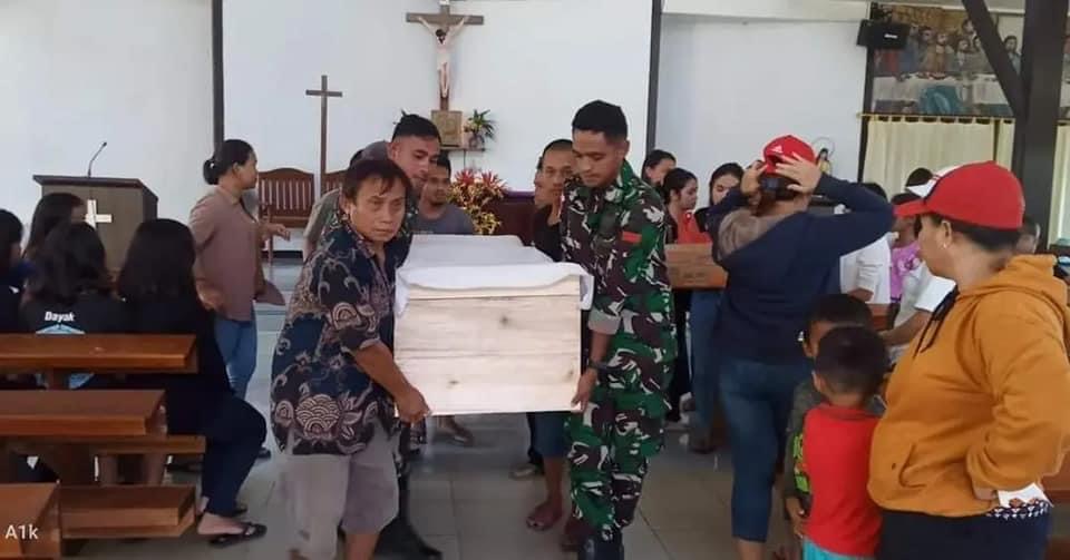 Dansatgas mengungkapkan, personel Satgas dari Pos Kout Jagoi Babang dipimpin Letda Inf Andi Muh Pagelipu beserta 3 orang anggota membantu proses pemakaman dari mulai proses ibadah pelepasan jenazah hingga ke tempat penguburan dengan membantu memikul Peti jenazah di Pemakaman Khatolik Jagoi Babang. Ungkap Dansatgas